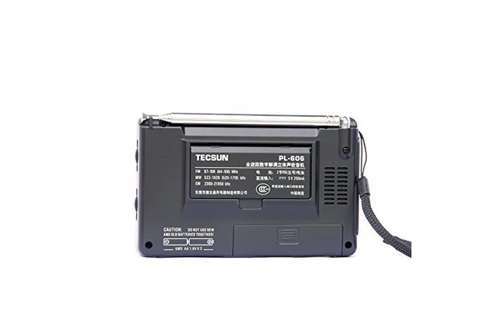 De Tecsun PL-606 is een compacte AM, FM, SW, MW en LW ontvanger wereld. De Tecsun PL-606 heeft de SI4734 microchip, een stereo hoofdtelefoonaansluiting, Verlicht LCD display, klok functie, alarm, snooze functie en vele andere functie (zie specificaties). De Tecsun PL-606 gebruikte DSP technologie voor gevoeligheid enselectiviteit, heeft 550 geheugenkanalen (100 AM/ FM, 250 kortegolf, 100 Lange golf en 100 middengolf), en de Tecsun PL606 werkt op: 2 x AA batterijen of op 5 Volt USB connector ( niet mee geleverd).